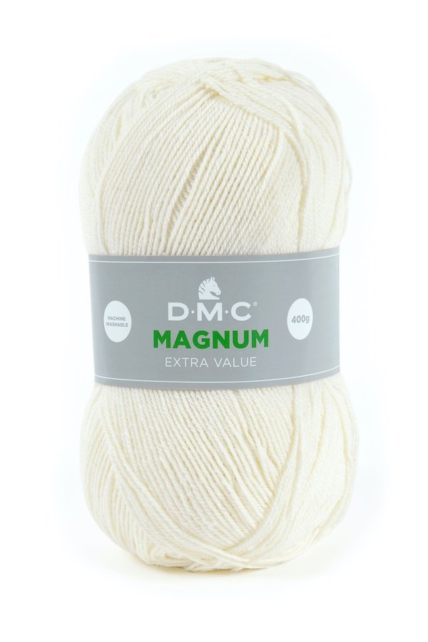 Magnum de DMC es una lana de grosor medio que se presenta en ovillos de tamaño XXL, perfectos para realizar trabajos extragrandes utilizando un solo ovillo. Estos ovillos son ideales para crear mantas, ponchos y otras labores grandes.